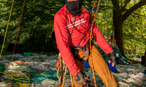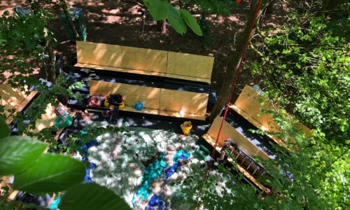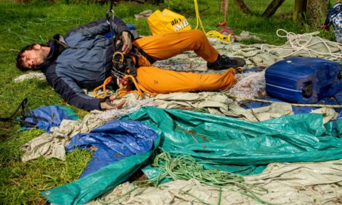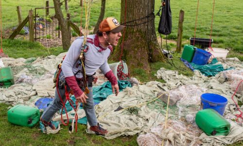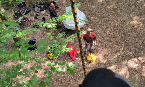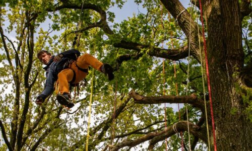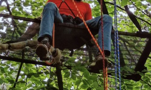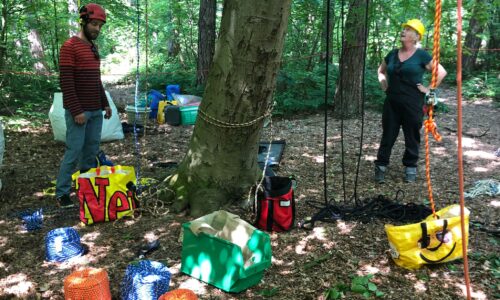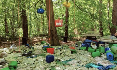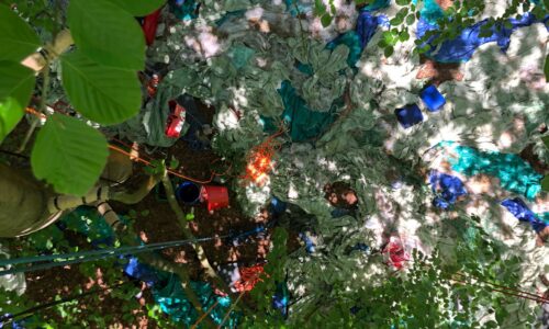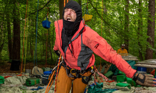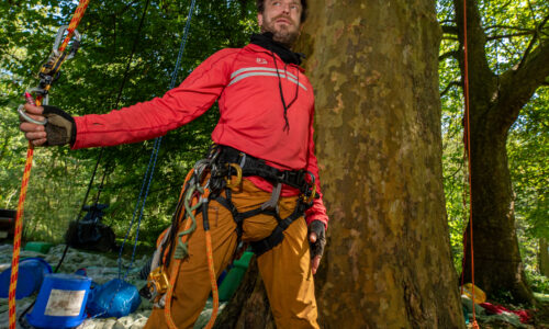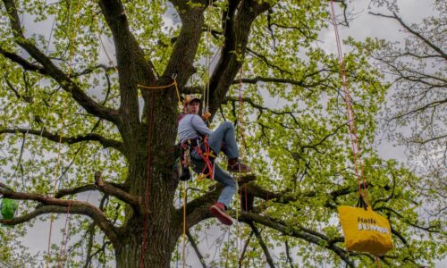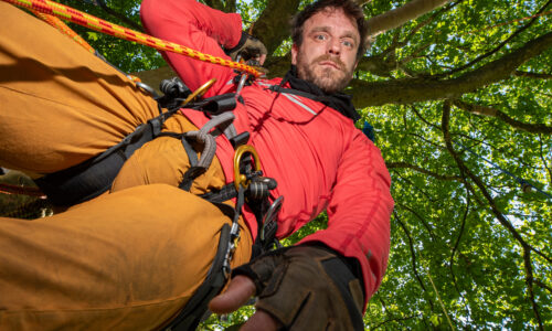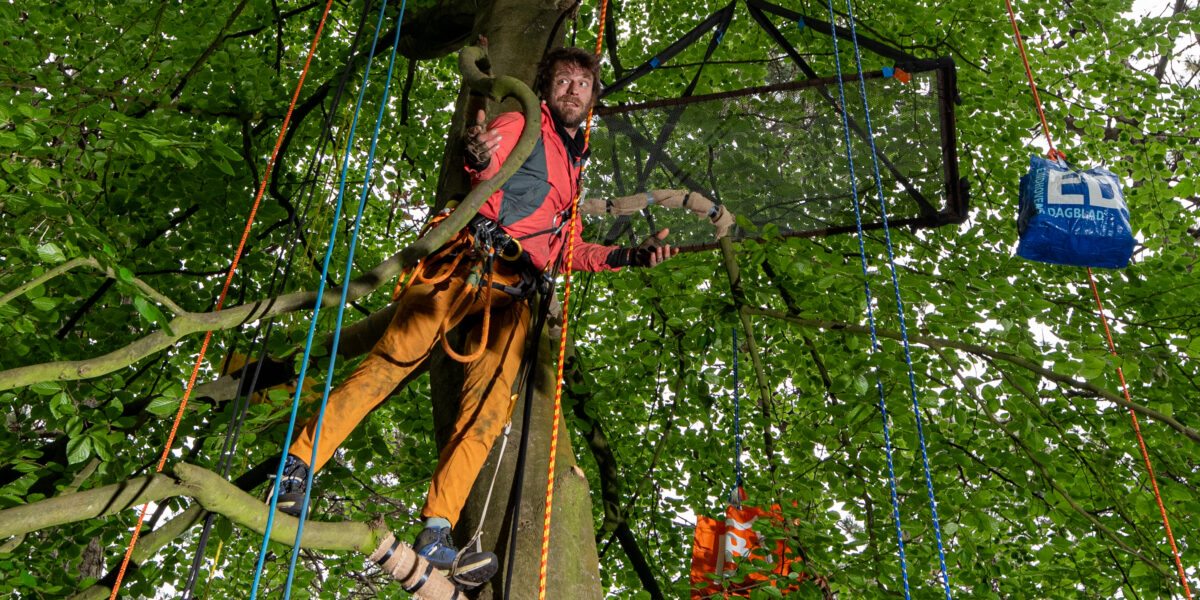 Hij weet niet meer precies hoe lang hij er al zit. Wel weet hij nog dondersgoed waarom. Ook al is de rest allang vertrokken. Hij is hier nodig. Hij moet dit doen. De volhardende activist die als enige overbleef in een poging om het bos om hem heen te redden. Toch waait het hard als je niet meer uit de wind gehouden wordt.