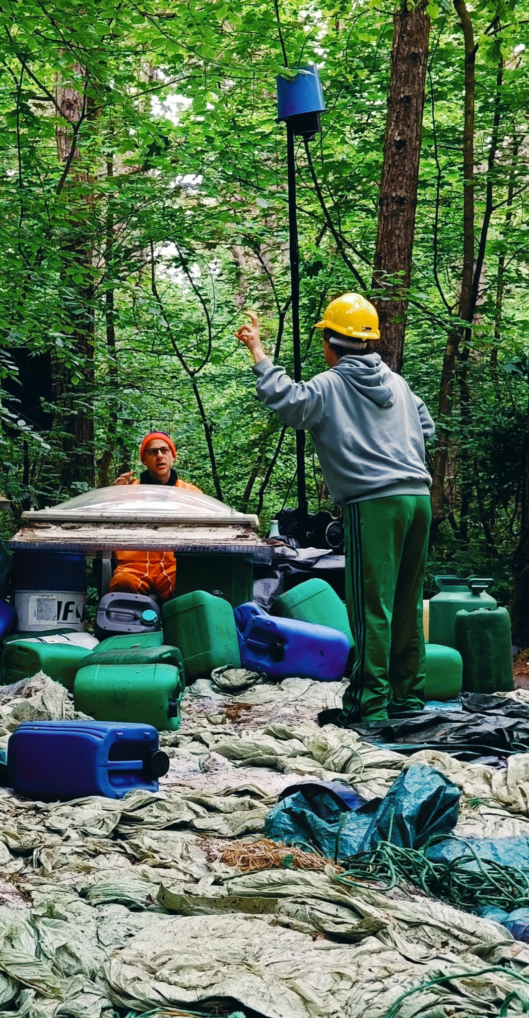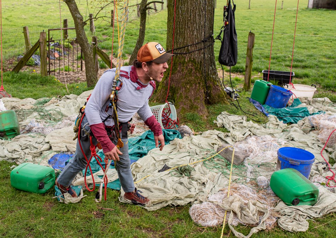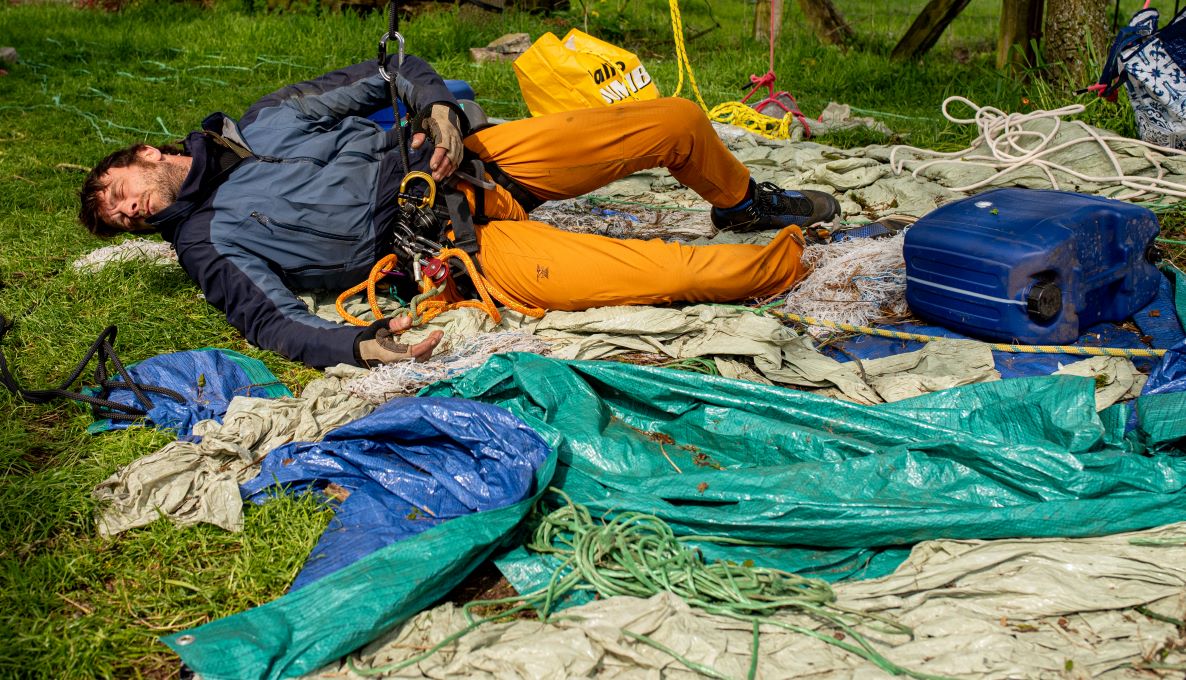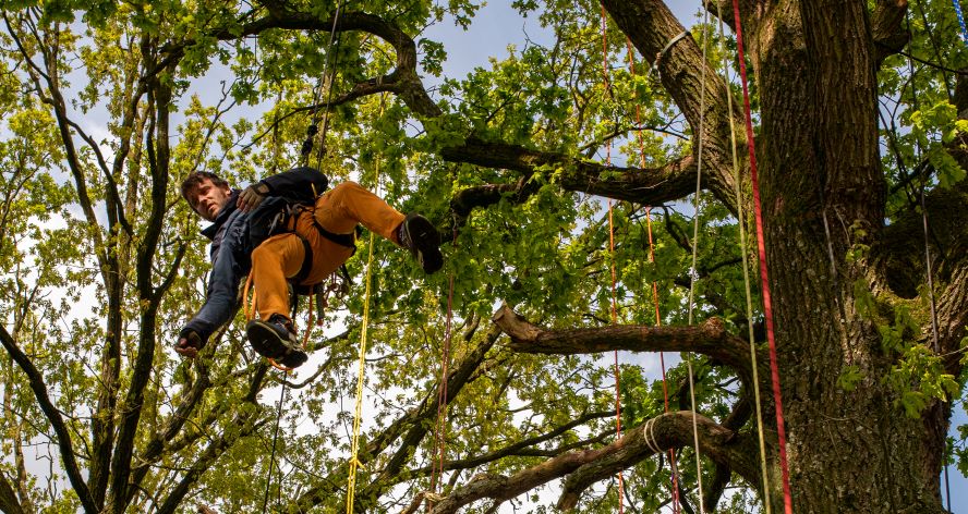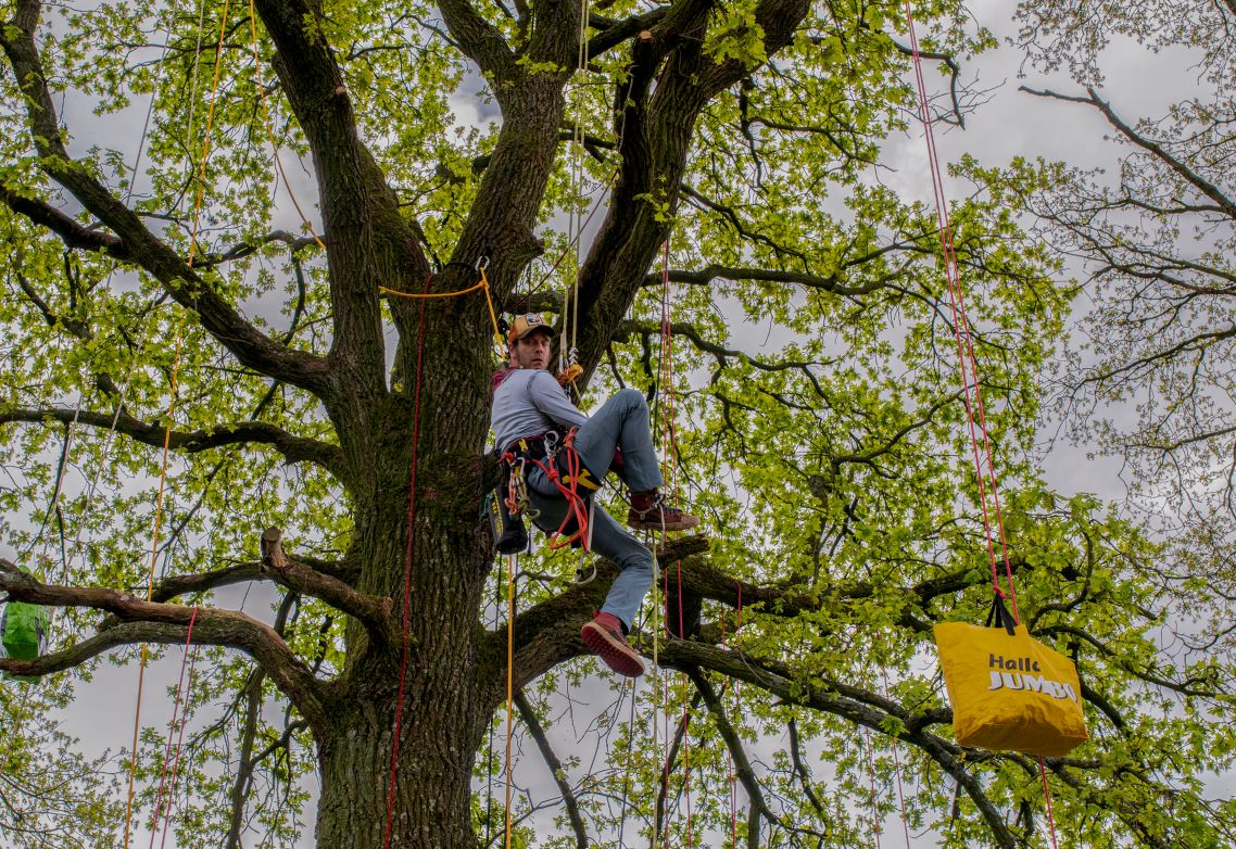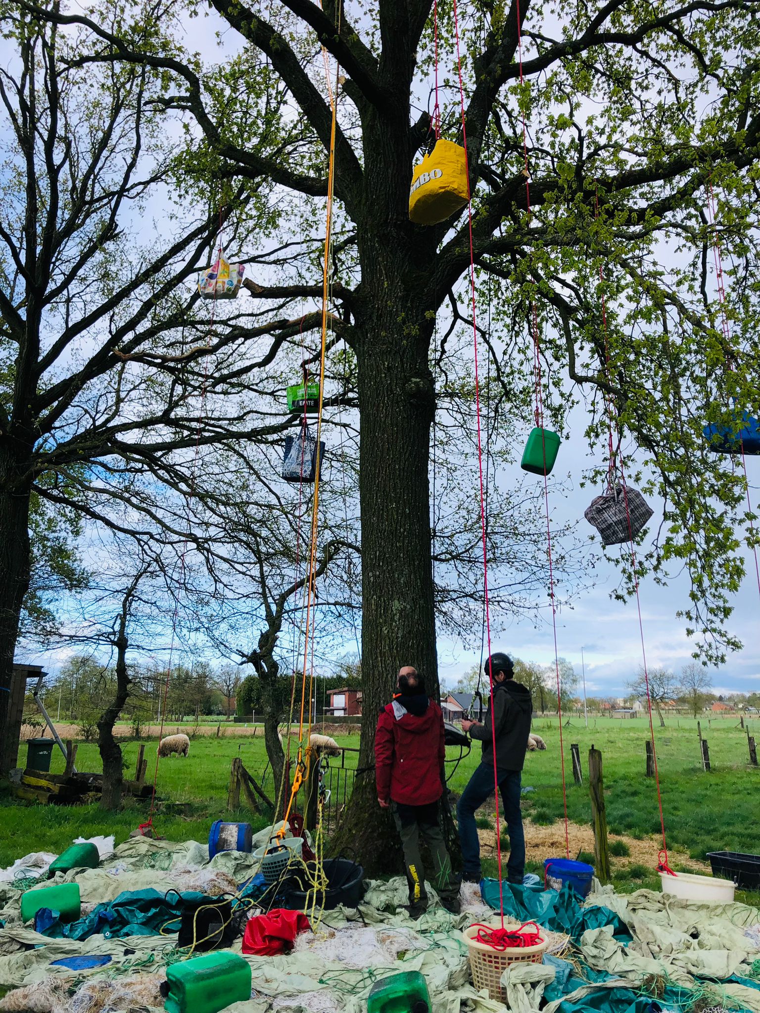Hij weet niet meer precies hoe lang hij er al zit. Wel weet hij nog dondersgoed waarom. Ook al is de rest allang vertrokken. Hij is hier nodig. Hij moet dit doen. De volhardende activist die als enige overbleef in een poging om het bos om hem heen te redden. Toch waait het hard als je niet meer uit de wind gehouden wordt.
