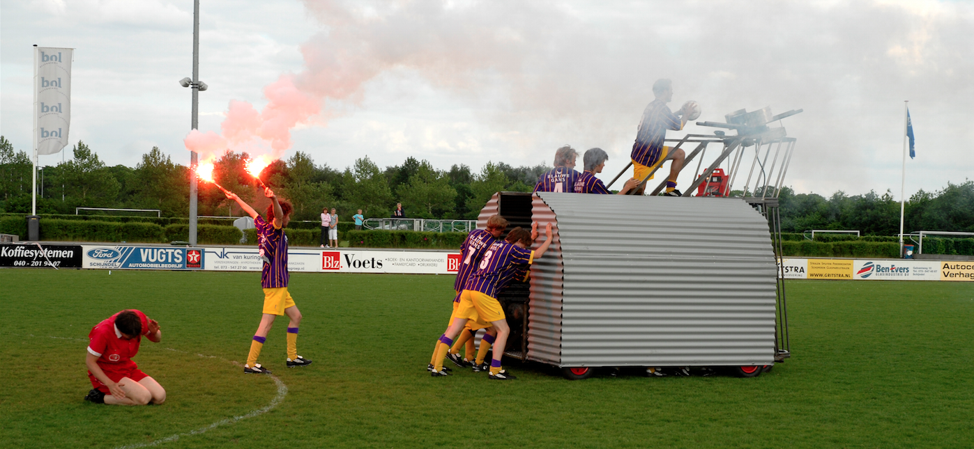 In het voorjaar van 2008, in aanloop naar het EK, bespeelde Afslag Eindhoven voetbalvelden in Brabant en Utrecht. Het verhaal draait om de kleine voetbalclub FC. Bocholt, die nog nooit zover geraakt is. Totaal onverwacht zijn ze als beste uit de competitie gekomen. Nu is het dan zover: de zinderende slotwedstrijd tegen de gedoodverfde kampioen.